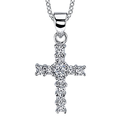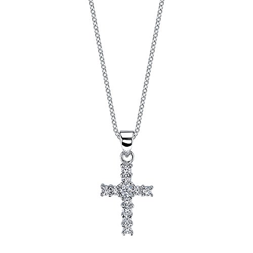 -. Title : Sterling Silver CZ Simple Formal Cross Pendant Necklace with Cubic Zirconias