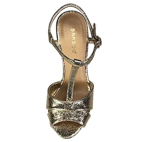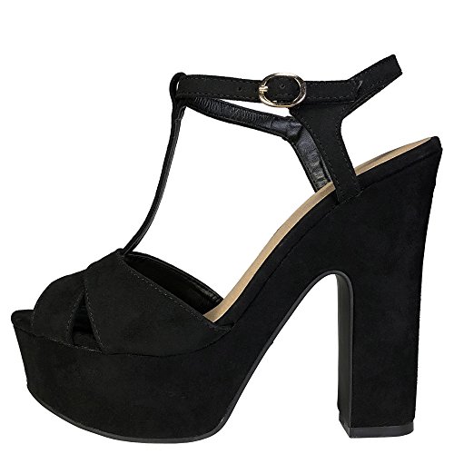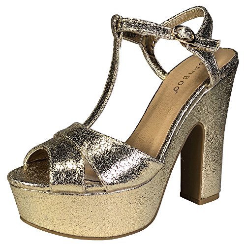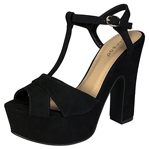 Bamboo Women's High Chunky Heel T-Strap Platform Sandal