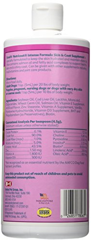 -. Feature : Supplies nutrients for healthy skin and coat for your pet / With C0Q1o, Salmon Oil, and Fatty Acid Complex to revitalize skin and coat / Easy to feed liquid / 32 fl oz bottle / Excel intense shield skin and coat 32oz / With essential fatty acids and vitamins required for a healthy skin and coat / Long lasting scent provides freshness between grooming