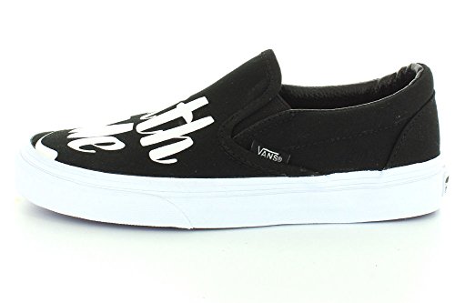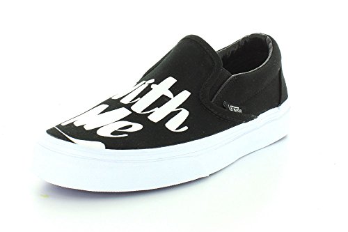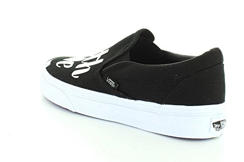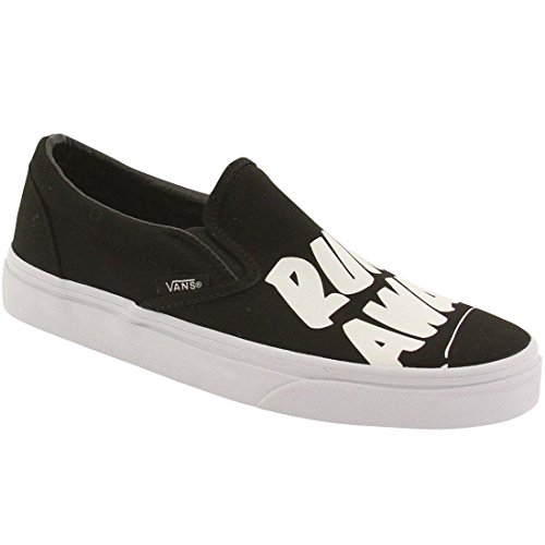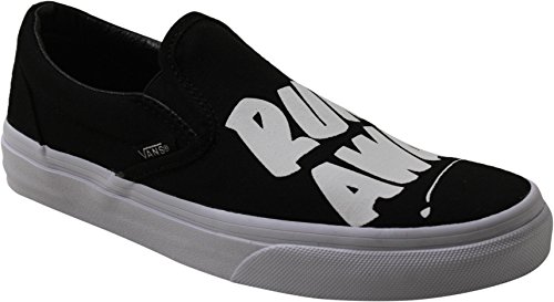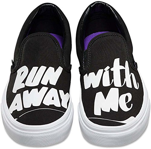 Vans NYC multi-media artist Baron Von Fancy is known for diverse artistic work that extends from large comic strip-genre paintings to playful and poetic simple statements. Bringing to mind the nostalgia of mid-century ad signage, the Baron Von Fancy Classic Slip-On, part of the Vans X Baron Von Fancy collaboration, combines the original Vans low profile slip-on with bold, hand-lettered phrases accented with flashes of bright colors. The Classic Slip-On also includes sturdy canvas uppers, padded collars, elastic side accents, and signature rubber waffle outsoles.Feature