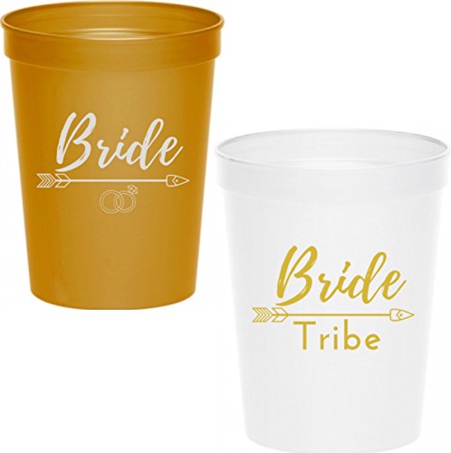 #glamist Bride Tribe Cups - White & Gold 16 oz Plastic Cup Set for Weddings, Bridal Showers, Engagement & Bachelorette Parties …