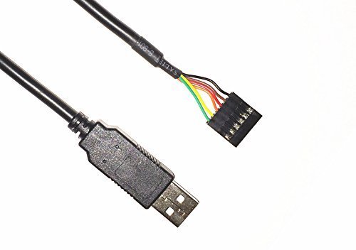 USB to UART cable with +3.3V TTL level UART signals. 6 output wires terminated by a 6 way, 0.1”, Single-In-Line (SIL) connector