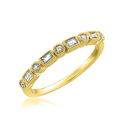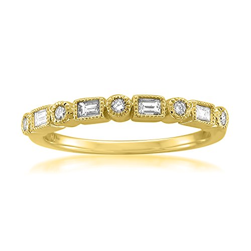 -. Title : 14k Yellow Gold Round & Baguette Diamond Bridal Wedding Band Ring (1/4 cttw, I-J, SI2-I1)