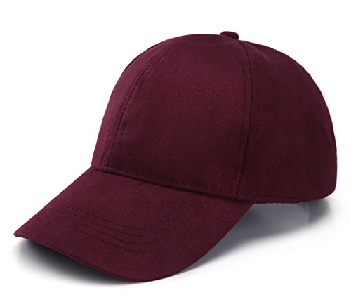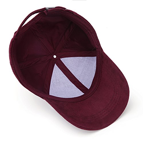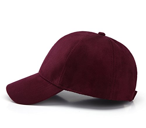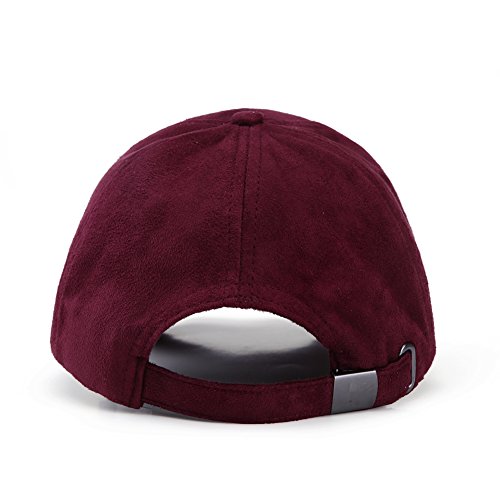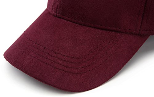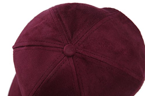 Title : JOOWEN 6 Panel Faux Suede Leather Classic Adjustable Baseball Cap (Wine Red)