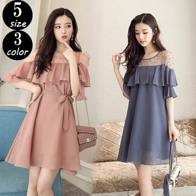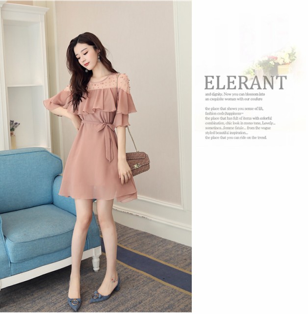 軽やかなシフォン素材のフリル袖と繊細なレースデザインで魅了するワンピース。