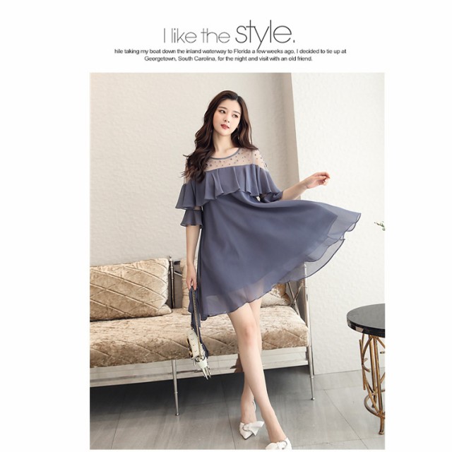 たっぷりシフォン生地を使った軽やかなAラインシルエット。