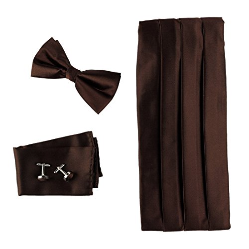 -. Title : Sienna Silk Pre-tied Bow Tie for Shirt for Marriage and Cummerbund Hanky Cufflinks Set with Box Cm1009 Brown