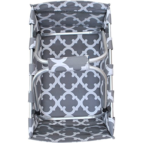-. Feature : Double Metal Handle Snap together with Velcro / 2 net pockets on inside, Rubber feet on bottom / Detachable Metal Frame, Collapsible / Material: Canvas / Dimensions: 17" X 9" X 15½"