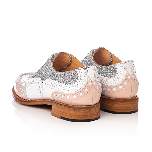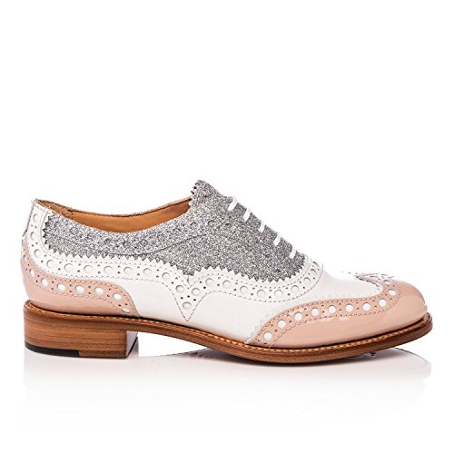 Product DescriptionNude, white Italian patent leather brogue with glitter textile from The Office of Angela Scott.0