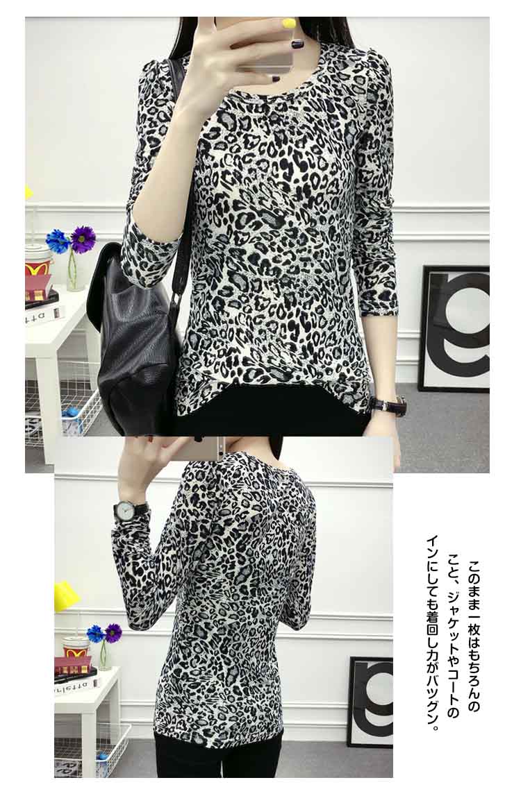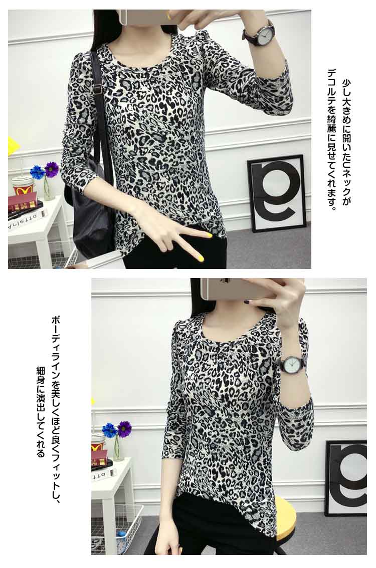 | レオパード総柄がインパクト大の長袖Tシャツ。コンパクトデザインで爽やかさUP。レオパード柄好きにはたまらないデザイン。チクチクしにくく肌触りの良い、程よい厚みの生地を使用少し大きめに開いたUネックがデコルテを綺麗に見せてくれます。ボーディラインを美しくほど良くフィットし、細身に演出してくれるこのまま一枚はもちろんのこと、ジャケットやコートのインにしても着回し力がバツグン。 | |