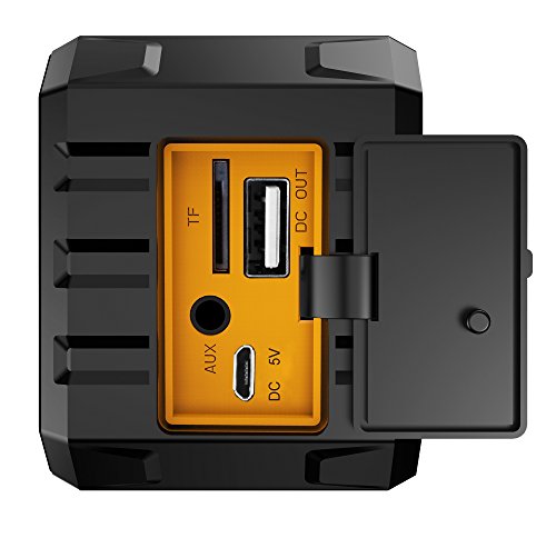 Use it as a Power Bank - Built-in 2600mAh Rechargeable Li-ion Battery for up to 12 hours of playtime. Also, the F5 Bluetooth speaker can be used as a power bank to charge your cell phone, tablets or other devices with 5VDC power input. USB charge cable included allows to charge the speaker from most USB ports from your laptop, computer, cellphone charger or USB outlets.