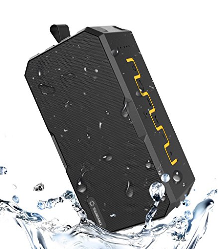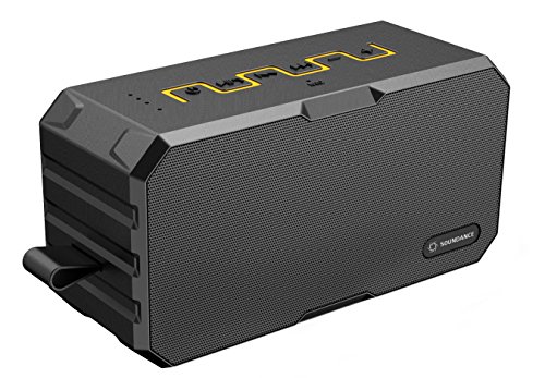 Soundance IP65 waterproof Portable Power bank Bluetooth Shower Speaker, up2 12 Hours Playtime & 25m BT Range, for indoor outdoor beach & poolside, compatible with iphone & android (Black&Yellow)