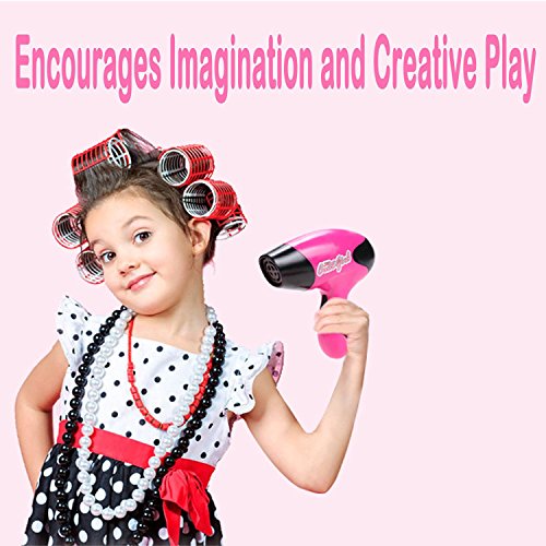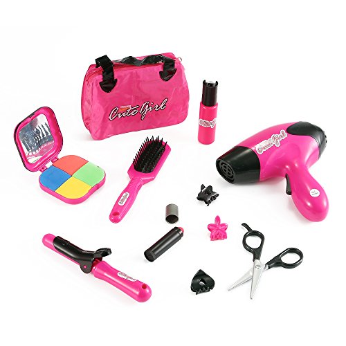 Here's the perfect accessory kit for little girls. Includes 12 fabulous beauty accessories. Includes brush, scissors, hair clips, straightener, credit card, carrying bag and more! Battery operated motorized hair dryer blows air! Ages 3 and Up.