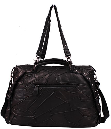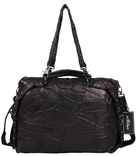 Iblue 15 Inch Women's Trendy Splicing Hobo Handbag Satchel Messenger Bag #1678 (black 15'')