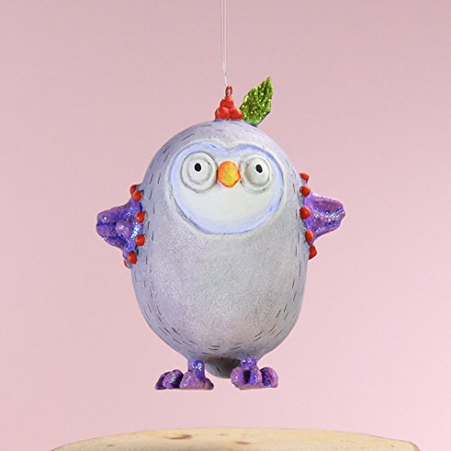 - Mini Olivia Owl Ornament jumps from her nest and stands proud and brave in her bright purple gloves and socks and tiny holly leave and berries on her head.