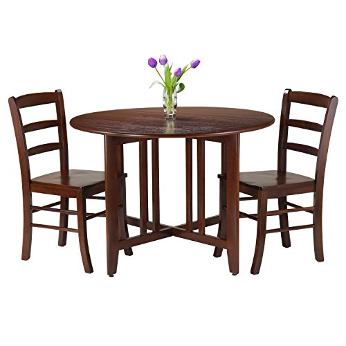 -. Title : Winsome 3-Piece Alamo Round Drop Leaf Table with 2 Ladder Back Chairs