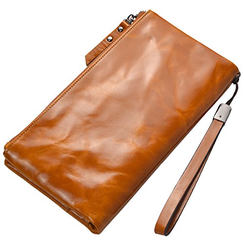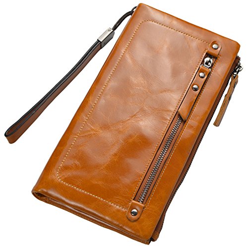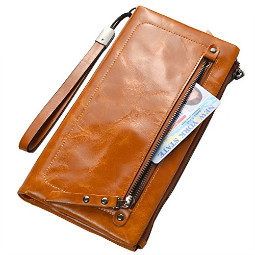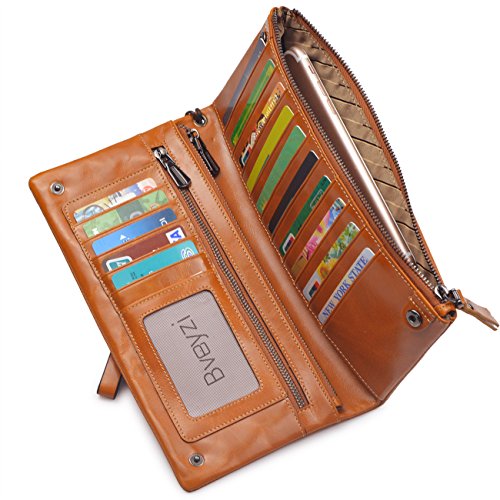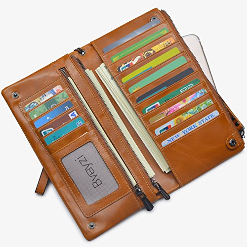 Bveyzi Women's Large Capacity Soft Real Leather Wristlet Wallet Checkbook Passport Holder