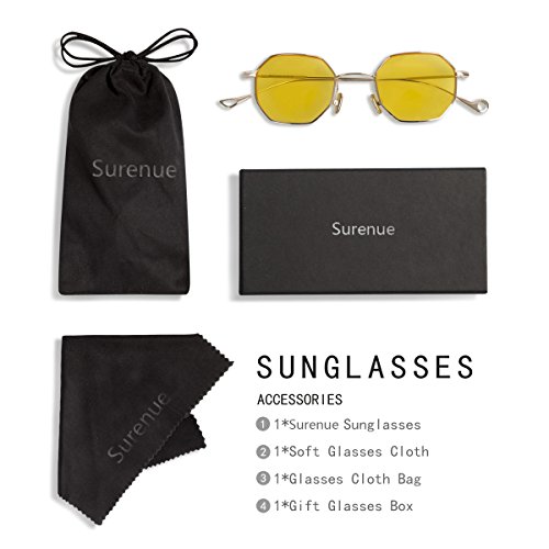 Sunglasses for women Surenue Small Metal Frame Asymmetry Temple Unisex Square Retro Vintage Sun Glasses