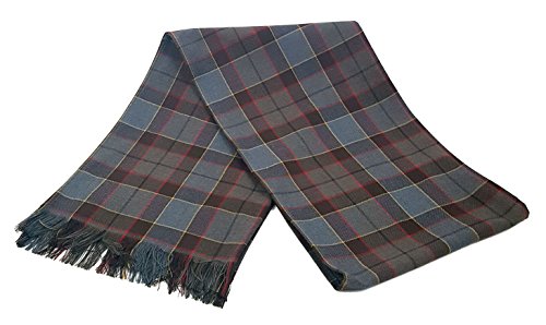 Binding : Apparel Product Description OUTLANDER Scarves made from the officially Licensed OUTLANDER: The Series Poly/Viscose Tartans! These poly/viscose tartans are a wool-free version of the tartans created for, and worn by your favorite characters, in OUTLANDER The Series! Now you can have your very own OUTLANDER poly/viscose Scarf! Whether you are allergic to wool, or just want a great looking tartan for less than premium wool, our OUTLANDER synthetic blend is a great way to go! Our Poly/Viscose Tartan is hard wearing and cool to wear. To the untrained eye it is nearly indistinguishable from expensive 100% wool tartan. The OUTLANDER tartans are woven as a hopsack plain weave with a wash only, to give it that natural look. A perfect way to display your favorite OUTLANDER tartan. 0