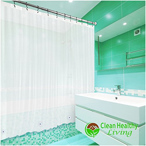 Premium PEVA Shower Liner / Curtain: Odorless & Mildew Resistant (with Magnets & Suction Cups). Eco Friendly 70 x 71 in. long - Frost Color - 2 Pack