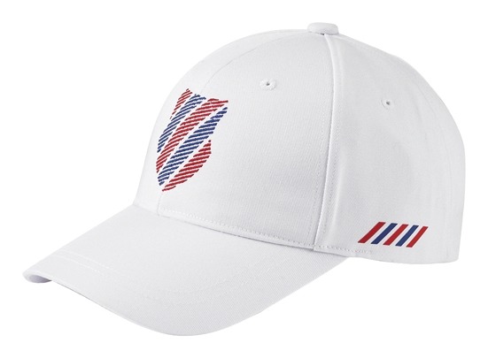 기본형 캡 스타일로 방패볼륨 자수가 디자인 포인트. 케이스위스 캡의 시그니쳐 아이템.