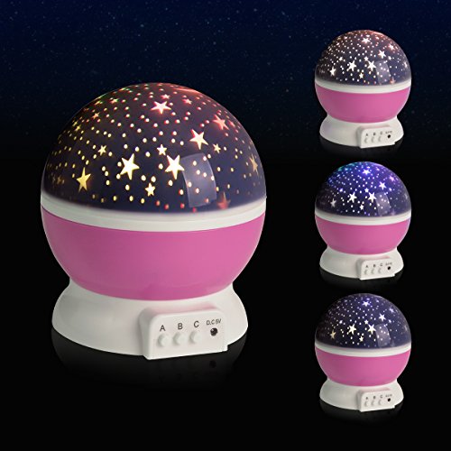 Star Lighting Lamp, TechKen Sleep Soother Star night lamp and Projection LED 2 in 1 Light Lamp with soft 4leds,Charming Night Sky Light for Baby Nursery and Adults, 360 Degree Rotating(pink base)