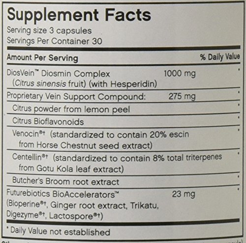 ReleaseDate : 2017-03-02 Studio : Futurebiotics Publisher : Futurebiotics Binding : Health and Beauty Product Description Clinical research has proven that potent natural ingredients found in citrus rinds, Gotu Kola and Horse Chestnut help support normal vein function. Vein Factors supports normal vein function with patented extracts, traditional compounds and natural co-factors. Since our early beginning in 1984, Future biotics has been committed to "Creating a Healthier Future by helping our customers lead healthier lives through better nutrition. After more than 30 years, that is still our commitment. This comprehensive and meticulous commitment to product integrity guarantees that you can be absolutely confident that when you choose a Future biotics product for yourself and your family, you are choosing the very best nature, and Future biotics, has to offer. 0