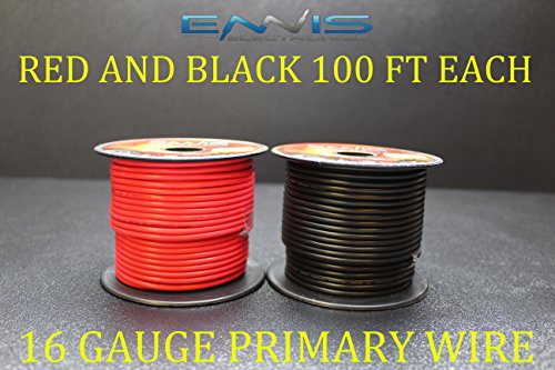 16 GAUGE WIRE ENNIS ELECTRONICS 100 FT RED 100 FT BLACK PRIMARY REMOTE HOOK UP AWG COPPER CLAD