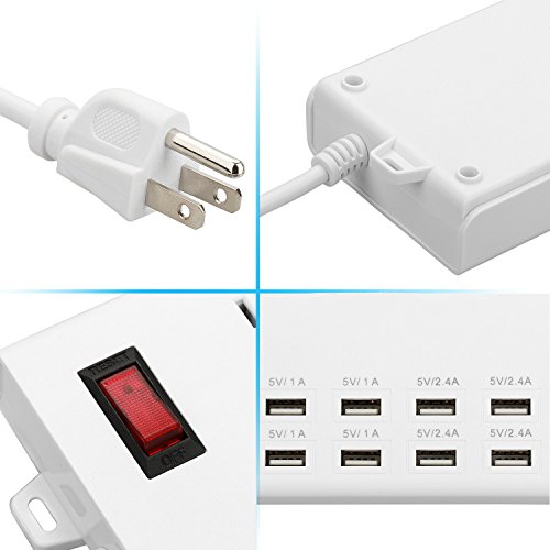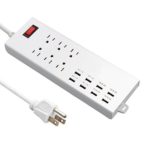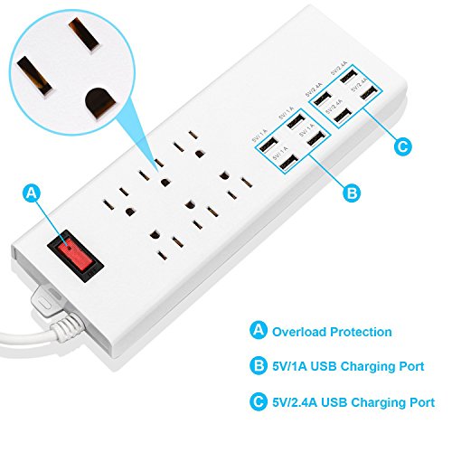 uxcell AC 125V US Plug 6 Smart US Power Strip Outlet 8 USB Charging Port Extension Cable Socket for Home, Office, Hotel, Nightstand & Dresser