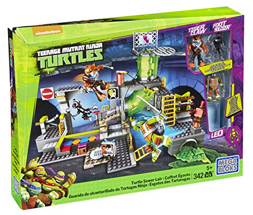 -. Binding : Toy -. Brand : Mega Bloks -. EAN : 0887961290370 -. Feature : It's time for Leonardo to shell out some serious justice / Build the lair and get set for an epic clash of mean versus green / Activate the action block in the floor, sending the enemy flying away from the door! / Unleash Leo's Turtle Power and zip-line him to the top of the lair to stop Tiger Claw / Connect with other Mega Bloks Teenage Mutant Ninja Turtles sets -. IsAdultProduct : 0 -. Label : Mattel -. LegalDisclaimer : BRAND NEW. SEALED PACKAGE. SHIPS DIRECT FROM AMAZON WAREHOUSE. -. Manufacturer : Mattel -. Model : DMX55 -. MPN : DMX55 -. PackageQuantity : 1 -. PartNumber : DMX55 -. ProductGroup : Toy -. ProductTypeName : TOYS_AND_GAMES -. Publisher : Mattel -. ReleaseDate : 2016-01-01 -. Studio : Mattel -. Title : Mega Bloks DMX55 Teenage Mutant Ninja Turtles - Turtle Sewer Lair, 342 Piece -. UPC : 887961290370 -. Warranty : 1 year warranty against manufacturer defects
