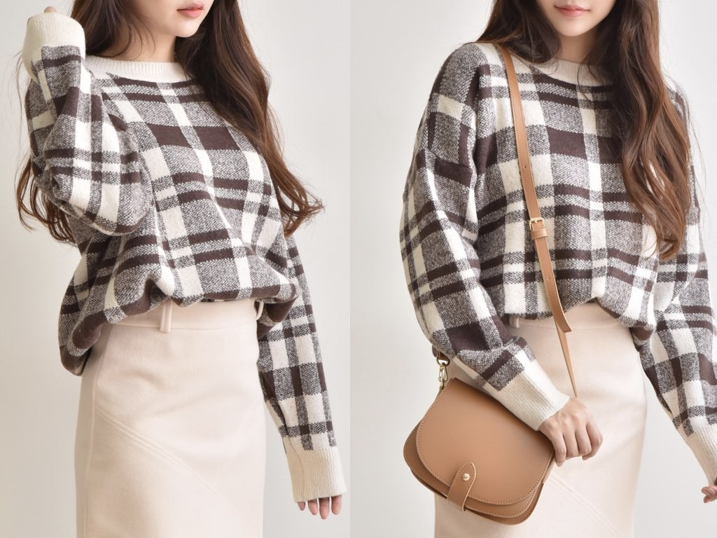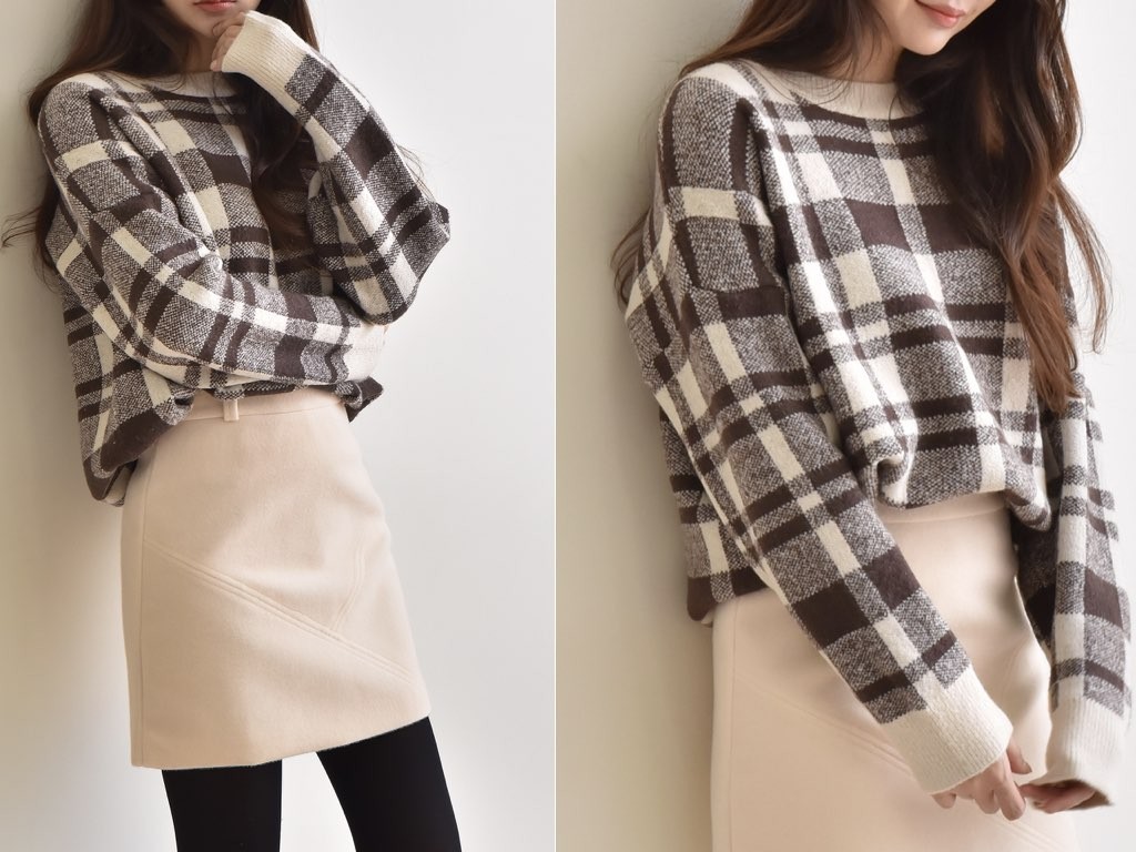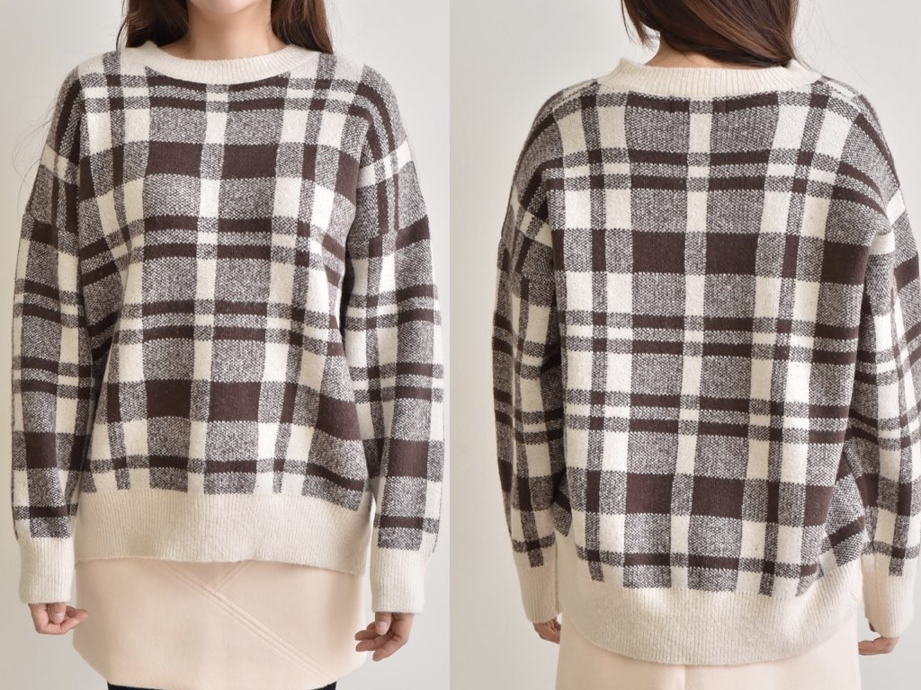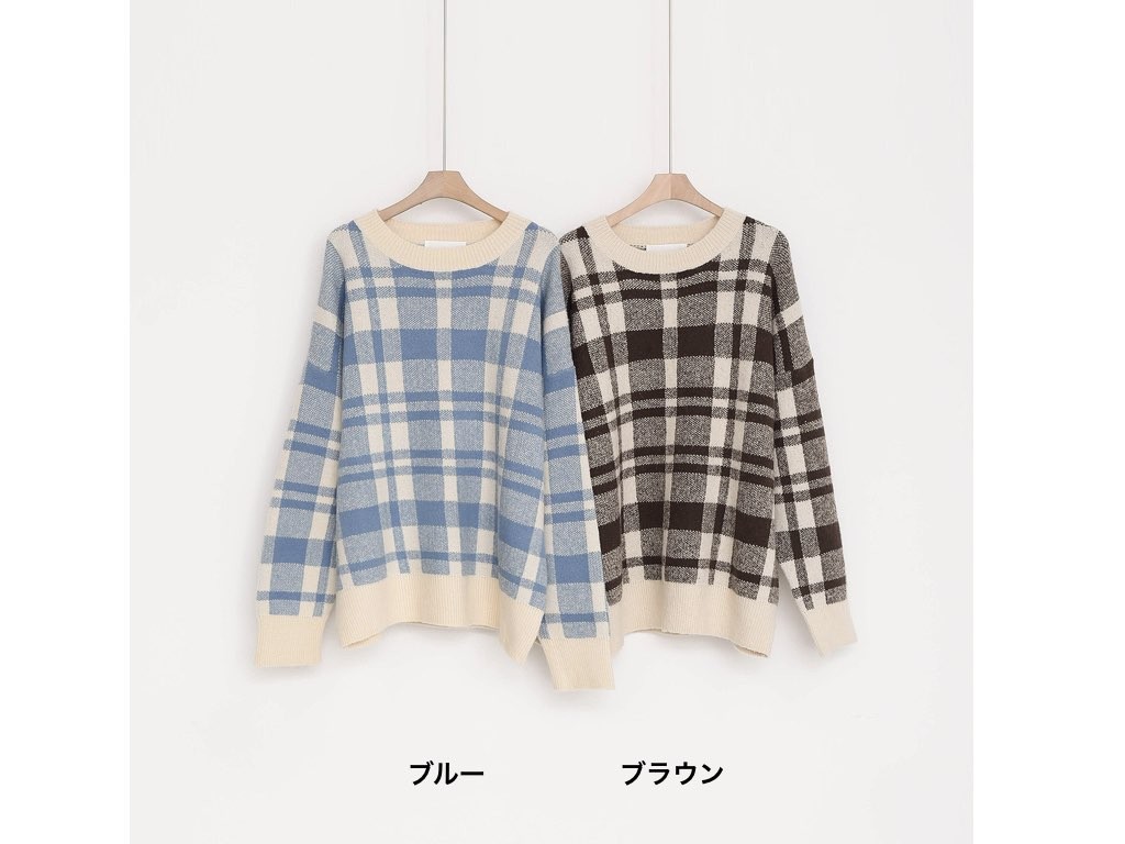 ニットのトップスです。さらりと着れてインナーとしても重宝するアイテムです。スカートに合わせて、スタイリングするとオシャレですね。商品は、とても丁寧なつくりとなっています。1.基本情報色:2色展開(ブルー/ブラウン)サイズ:Free素材:ウール15%、アクリル85%製造国:Korea2.サイズ情報肩幅:52cm身幅(胸断面):59cm 腕の長さ:45cm 着丈(前):66cm (サイズは計る方法に応じて±2〜3cmの誤差があります。ご了承お願い致します)モデル着用サイズ:F※着用モデル(163cm、体重47kg、足のサイズ24.5cm)3.その他の情報厚み:中間透け感:なし伸縮性:中間裏地:なし洗濯方法:ドライ(クリーニング)[注意事項]お取り寄せ商品は、海外より仕入れるため納品まで約10日前後いただきます。また店舗でも販売しており、在庫切れになる場合もございます。ご了承お願い致します。