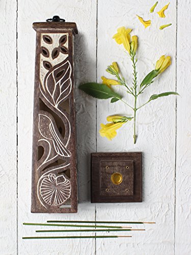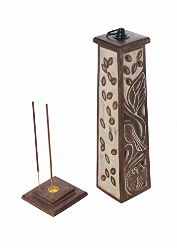 MATERIAL: Handcrafted from seasoned mango wood known for its durability. This incense tower has a natural walnut finish complemented with a white shade.