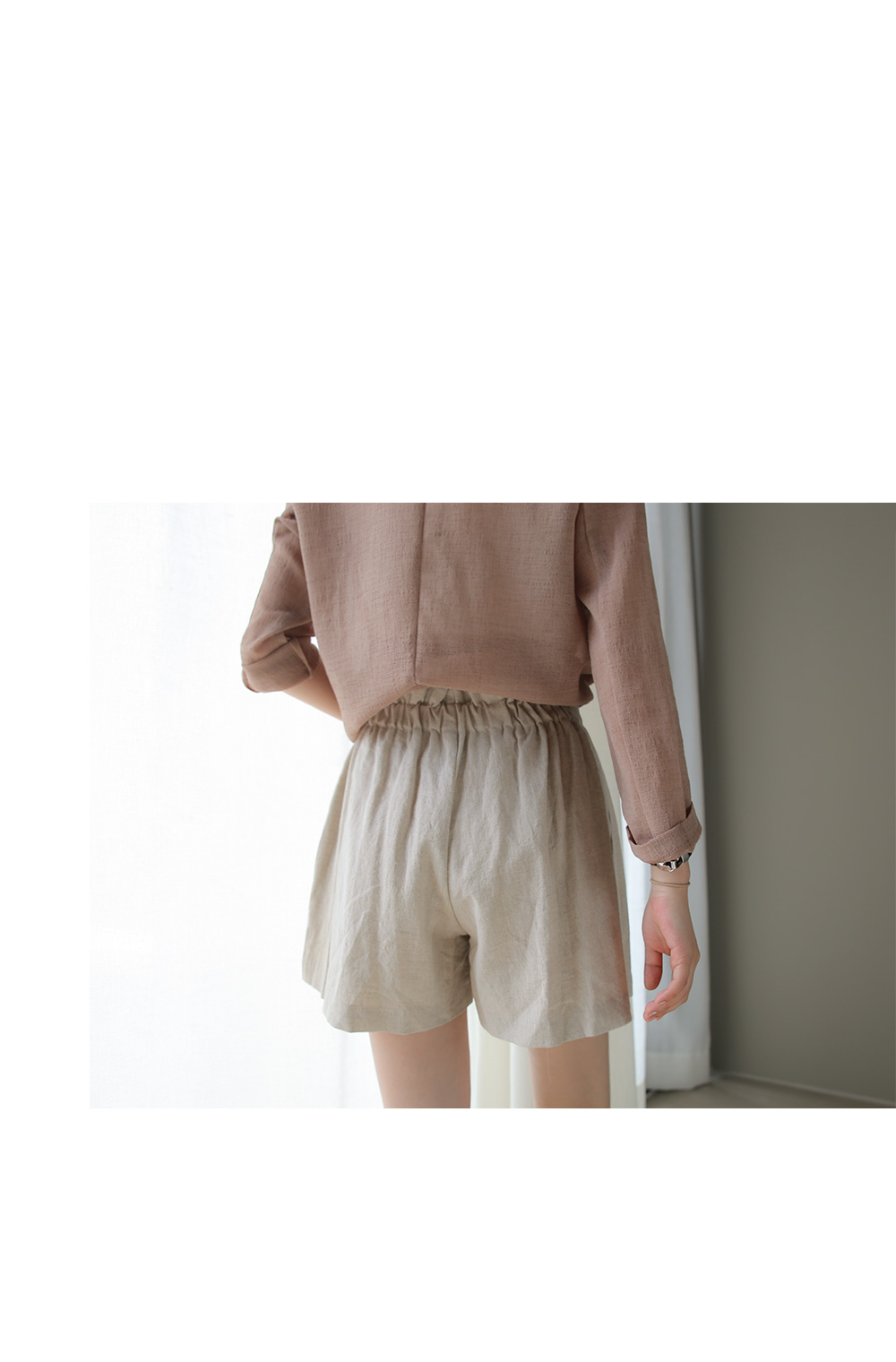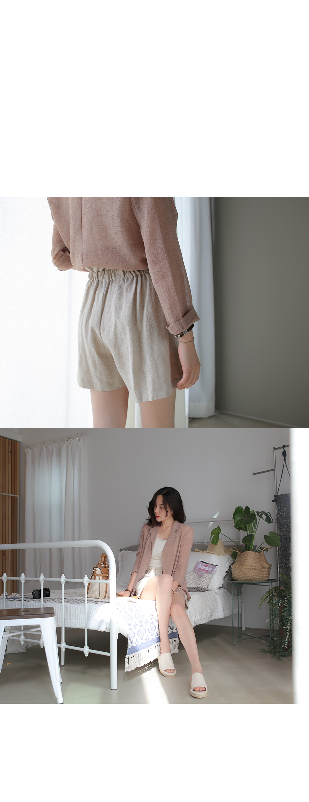 깔끔하면서 여성스러운 매력의 반바지로 허리밴딩부분 촘촘하게 셔링을 잡아 한층더 여성미가 돋보인답니다.