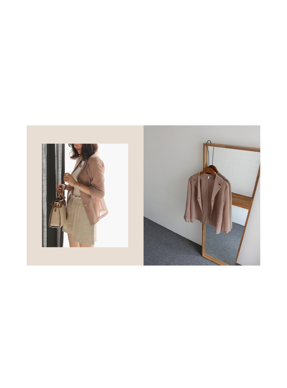 린넨 소재로 제작되었구요 오가닉한 린넨 소재라 통풍성이 굉장히 좋고 빨리 건조되는 특성이 있어 여름에 쾌적하게 착용하기 너무 좋답니다.