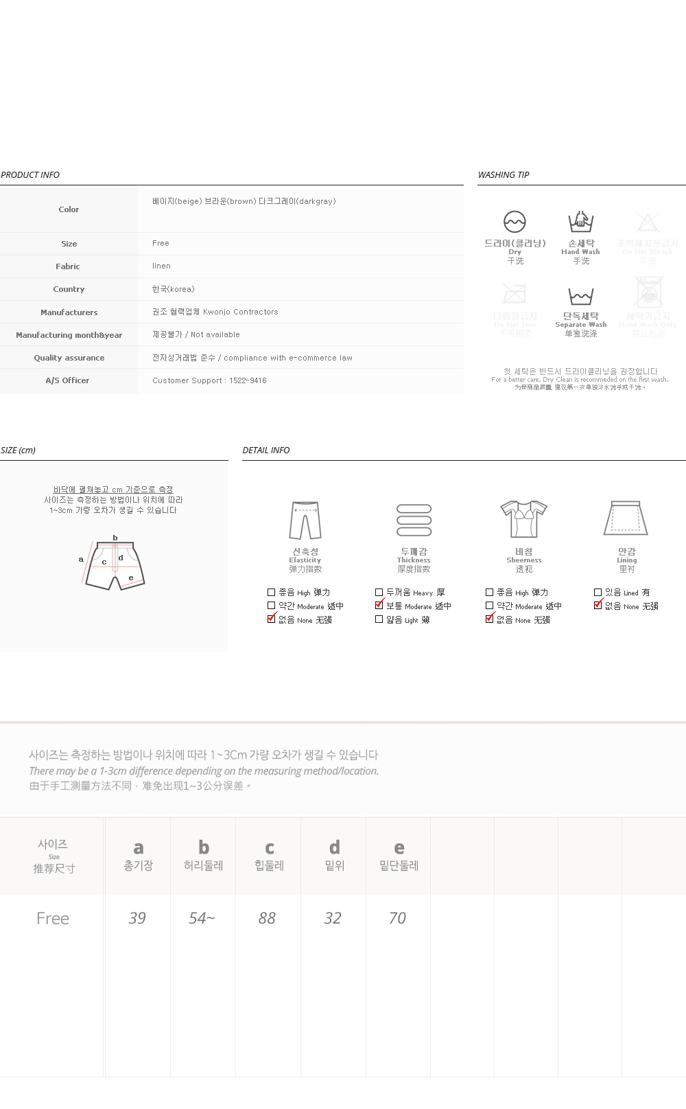 피팅컬러와 사이즈는 베이지,Free입니다.