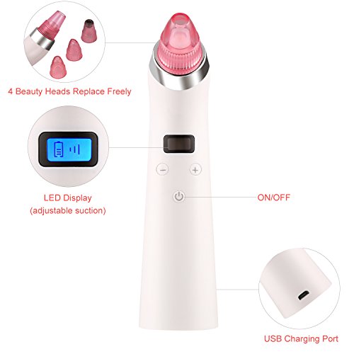 ACEVIVI Facial Pore Clean Suction Microdermabrasion portable Electric Blackhead Remover, USB Rechargeable with 4 Multi-Functional Probe Vacuum...