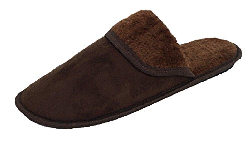 Product DescriptionMens Suede upper and faux-fur lined slipper Soft inner tread. Non skid Rubber outer sole Size: S(5-6), M(7-8), L(9-10), XL(11-12),0