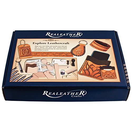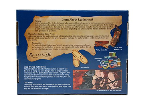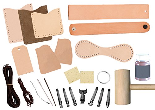 Real Leather Basic Leather Craft Starter Kit - Basic Tools and Leather to Make a Key Fob, Bag Tag, Wristband, Cell Phone and Card Sleeve
