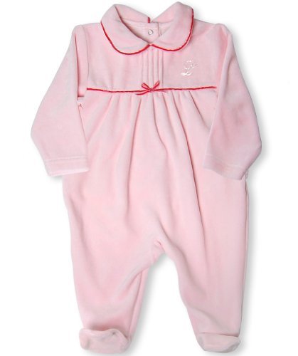 This Leveret romper will truly catch your eye, rich quality velour, light pink with pink ribbon around collar & chest , Snaps on the back for easy diaper change