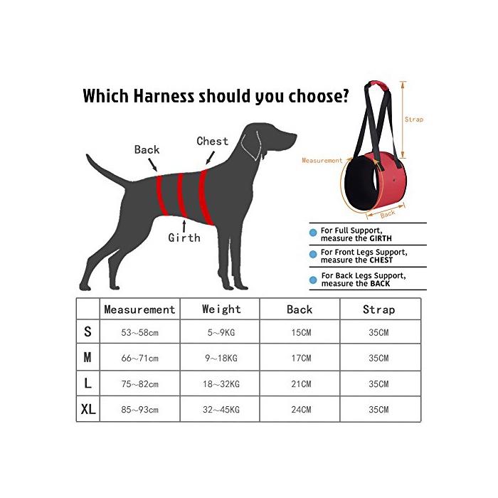 Lalawow 애완동물용 보행 보조 하네스 개 하네스 개호 하네스 늙은 개의 개호에!다리의 상처로!소형견 중형견 대형견 (M사이즈,레드)
