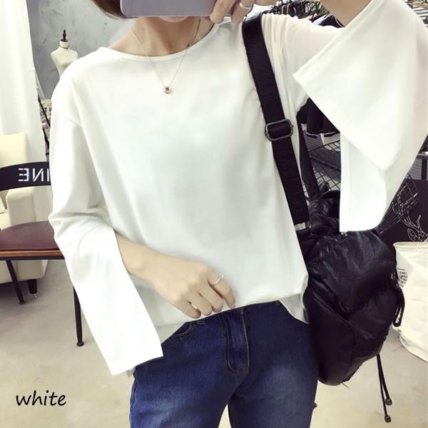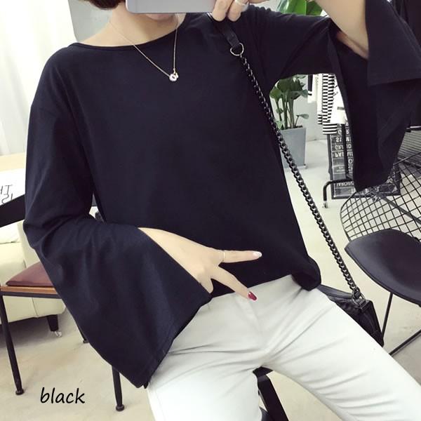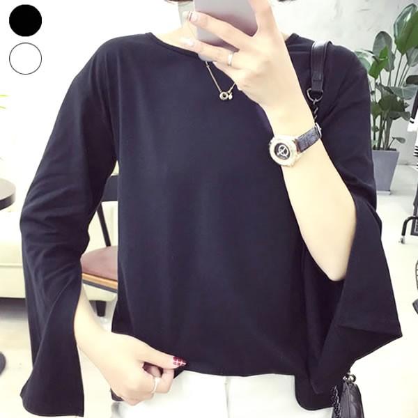 | 袖スリット シンプル カットソー トップス 無地 長袖 ブラック ホワイト 【スリット トップス レディース 女性 黒 春夏 肌見せ 黒 白 スリット スリーブ Uネック ロンデルブラック セクシー カットソー sexy】 | |