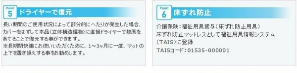 強力糸で支えるエアーラッセルは、クッション性(弾力性)を強め、底づきを克服しました。底づきなしで全身をしっかり支える事が、優れた体圧分散性へとつながります。 |