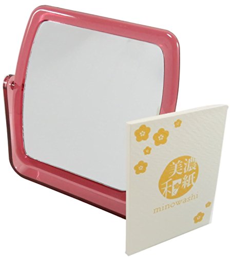 Double-Sided Square Makeup Mirror Swivel Mauve 5.5" x 5" with Minowashi Blotting Absorbing Oil Paper 100 Sheets (Bundle of 2)