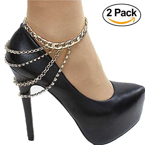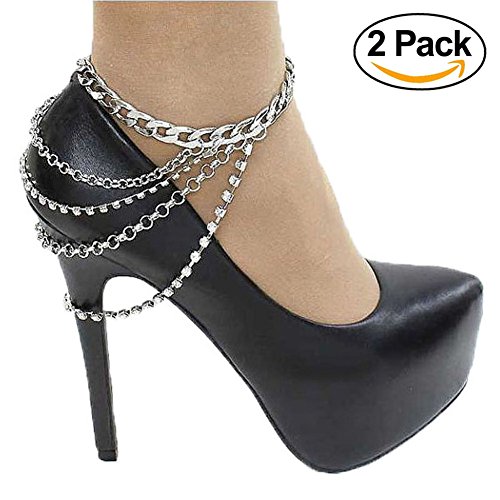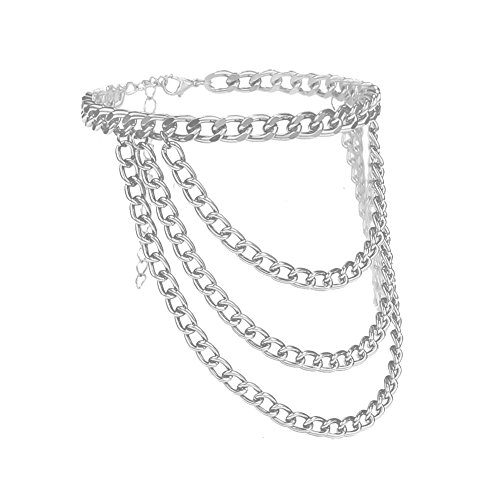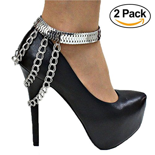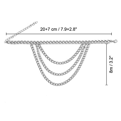 Silver Anklet Bracelet for Women Triple Layered Tassel Ankle Chain Sexy Foot Jewelry for Pump Shoes