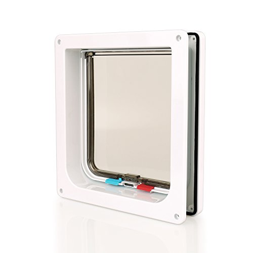 The White Pet flap is easy to fit and is ideal for allowing your pet instant access in and out of your home and it features 4 way locking. 4 way locking allows you to have the flap fully open, allowing your cat free access, exit only, entrance only and you can completely lock the flap too. Suitable for All Sizes of cats or Small Size dogs, such as Yorkshire Terriers, Pekinese and Dachshund.