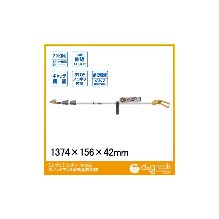 원본상품명:ムサシ #333 スパットマン 3段式 高枝切鋏 333
