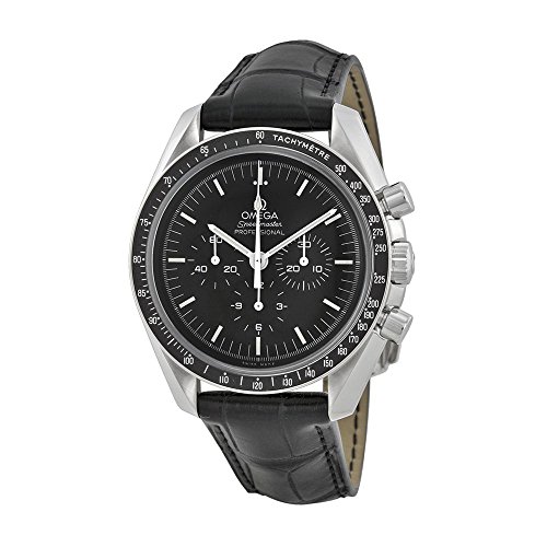 -. Title : Omega Speedmaster Chronograph Black Dial Black Leather Mens Watch 31133423001001