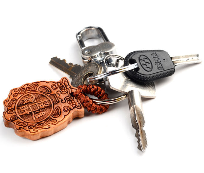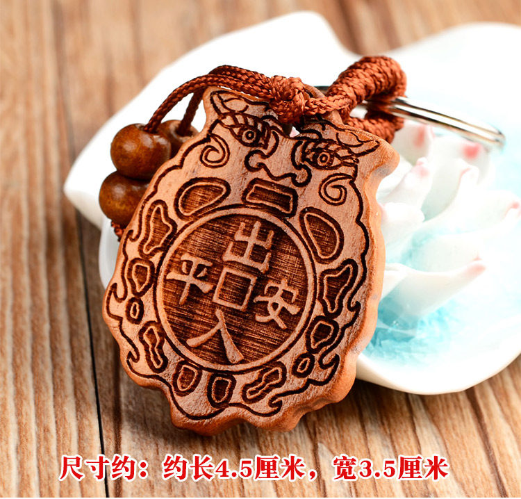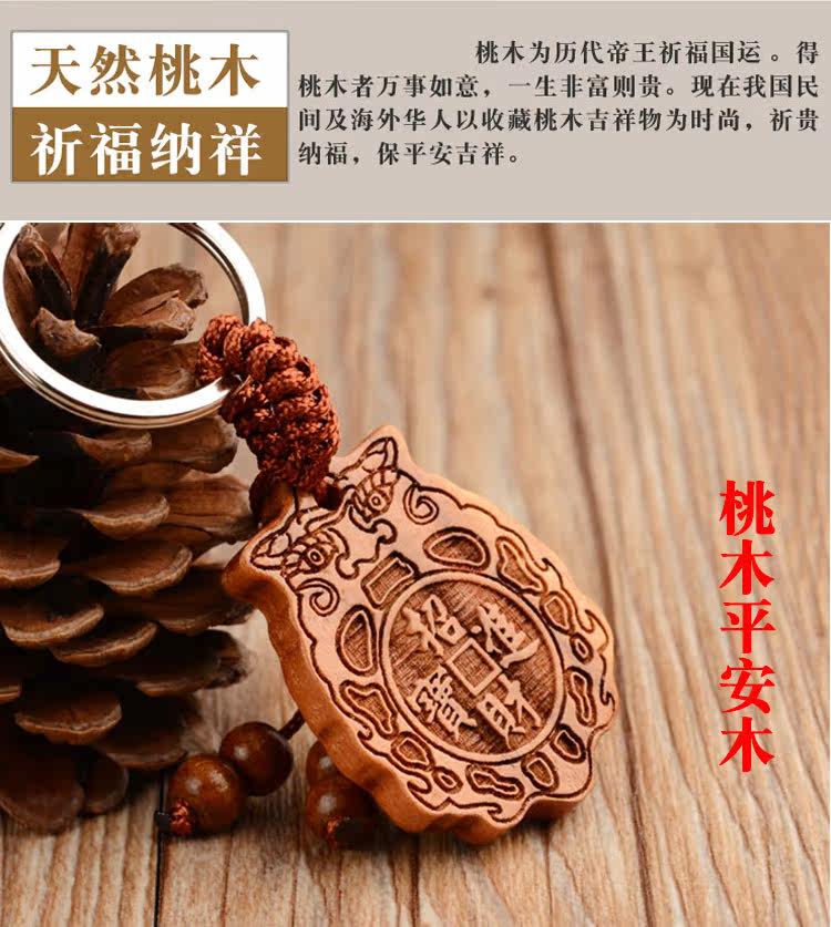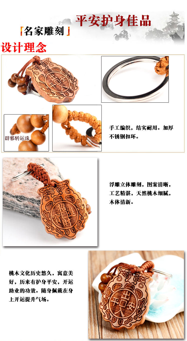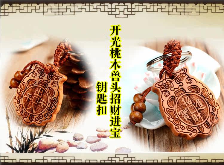 开运兽头桃木八卦镜钥匙扣钥匙链挂件汽车钥匙圈出入平安