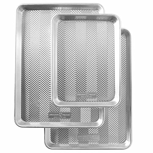 Nordic Ware Naturals Prism Durable, Scratch and Rust Resistant, Oven Safe 3-Piece Aluminum Baking Pan Sheets Set features Texture-Embossed Surface to Easy Release