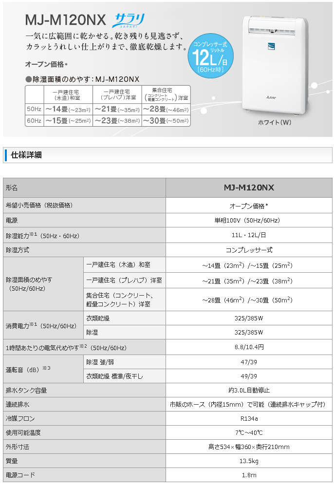 ●除湿方式:コンプレッサー式